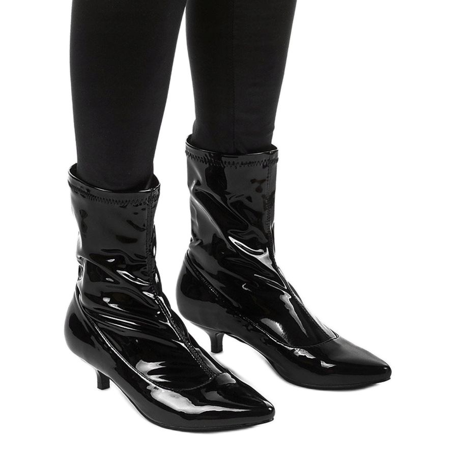 A Ragemour zoknival ellátott fekete patentos tűsarkú tökéletes választás a modern nők számára, akik értékelik az eleganciát és a kényelmet. Ezek az egyedi csizmák a KeeShoes kollekcióból a modern dizájnt ötvözik a klasszikus stílussal, így tökéletes kiegészítője bármilyen stílusnak.