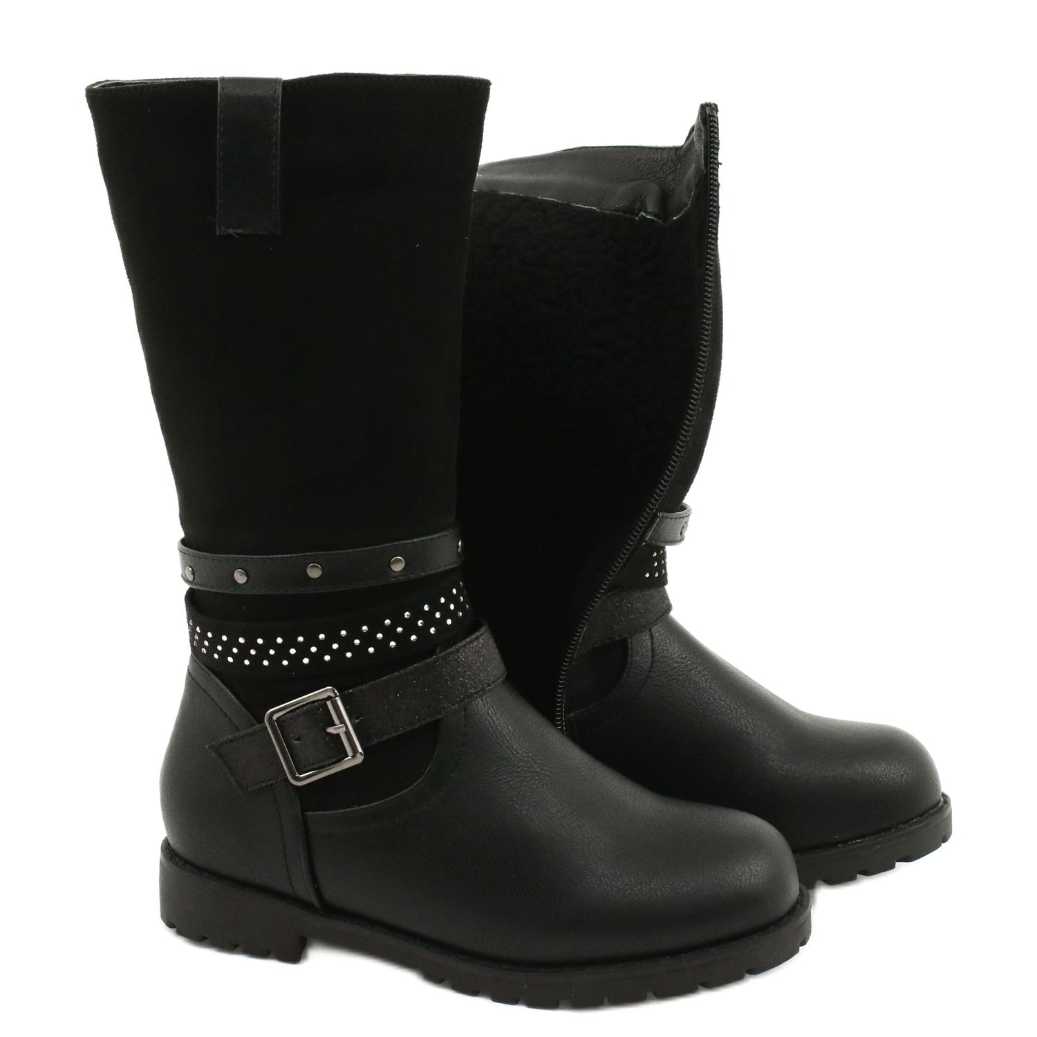 Bemutatjuk az Evento 20DZ60-3229 strasszokkal díszített hosszú lánycsizmát klasszikus fekete színben, amely tökéletes kiegészítője lesz bármilyen téli stílusnak. Ezek az elegáns és praktikus cipők kiváló minőségű ökológiai bőrből és velúrból készültek, ami egyedi karaktert ad nekik.