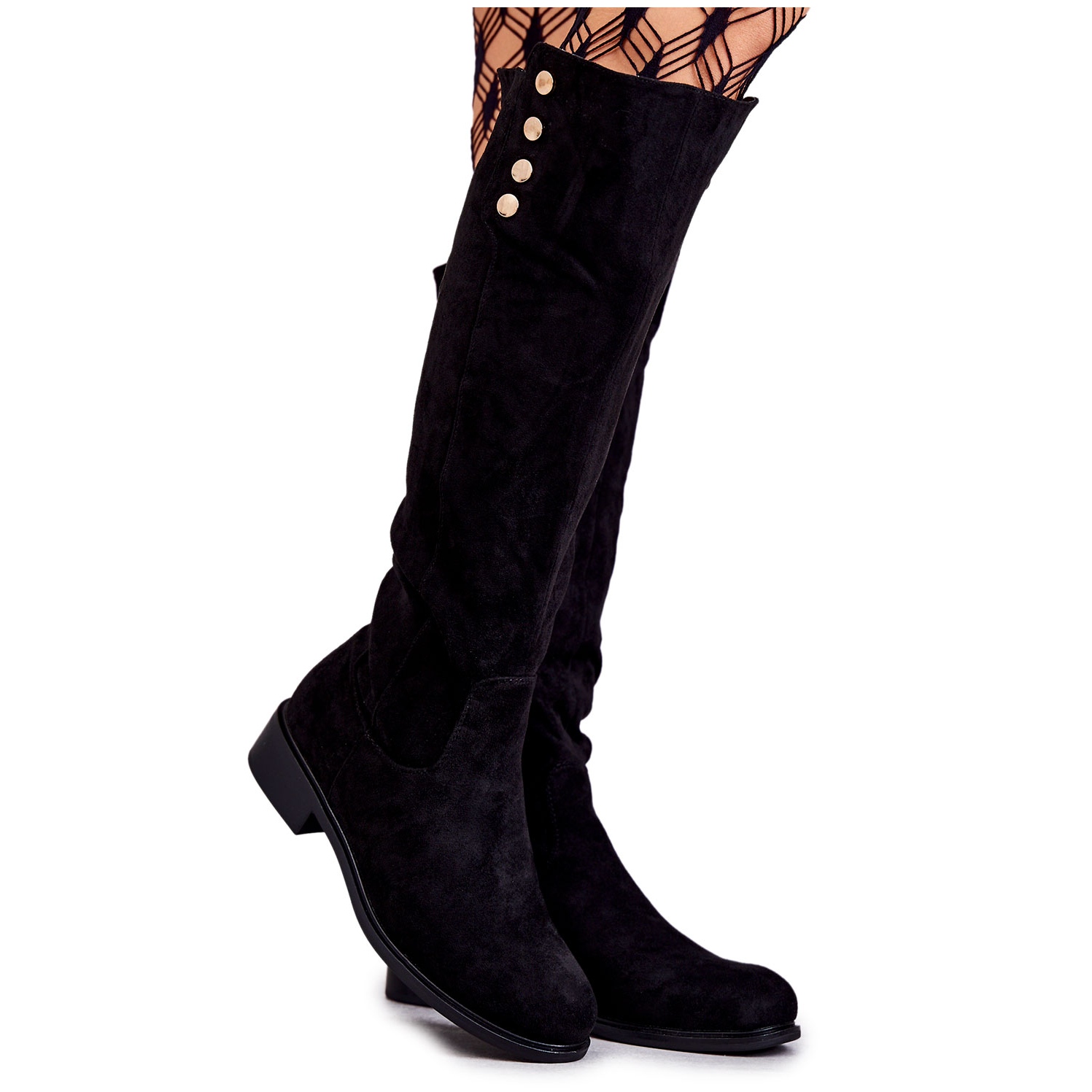 Részletek: S.Barski Fekete Laura meleg velúr lapos sarkú csizma