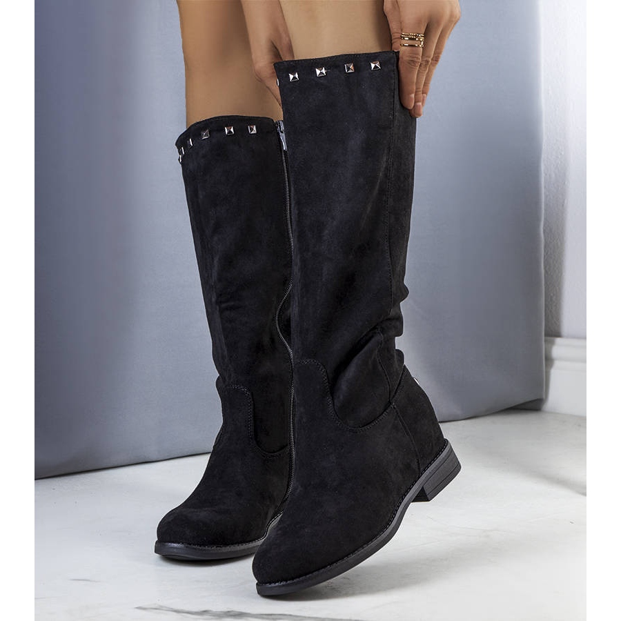 A csizma kerek orrú és praktikus cipzárral van felszerelve, ami megkönnyíti a felhelyezését. A magas, 5,5 cm magas ék nemcsak eleganciát ad, hanem stabilitást is biztosít járás közben. A gumiból készült talp garantálja a tapadást, a csizma fekete színe pedig minden bizonnyal megkönnyíti a különféle stílusok kialakítását.
