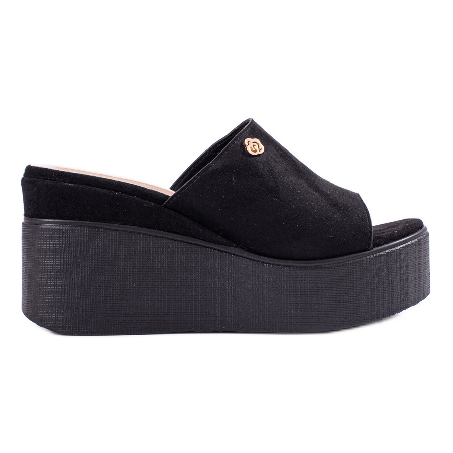 Ezeknek a papucsoknak az erőssége a stabil, 9 centiméteres ék, amely tökéletesen karcsúsítja az alakot, miközben biztosítja a viselési kényelmet, ami a magas sarkú cipőkben ritkán fordul elő. A sarok gondosan készült, ami garantálja, hogy hosszú ideig fog szolgálni anélkül, hogy elveszítené eredeti formáját.