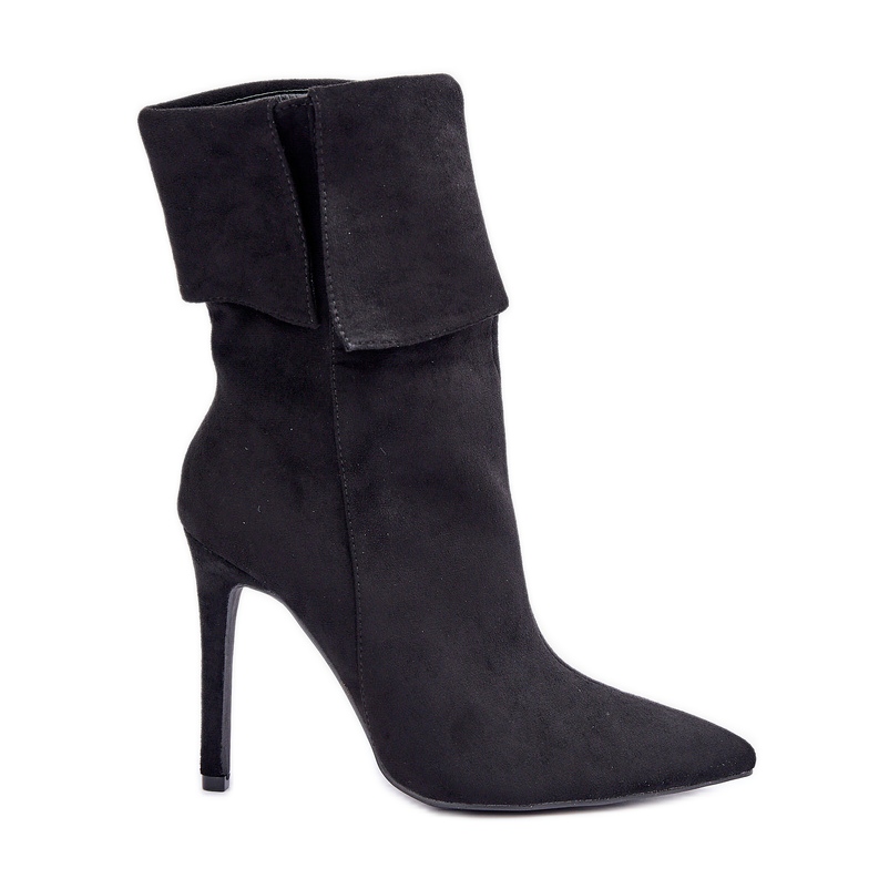 Részletek: Fekete magas sarkú bokacsizma, felhajtott felsőrésszel