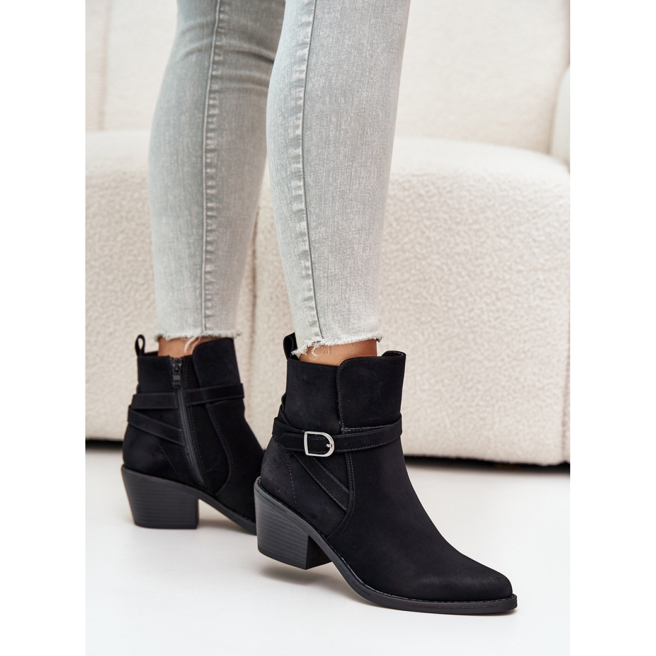 Fedezze fel az egyedi stílust és a kényelmet a fekete magas sarkú cowboy csizmával. Ezek az elegáns, fekete csizmák kiváló minőségű öko velúrból készülnek, ami nemcsak divatossá, hanem ökológiai választás is. A stabil sarokra helyezve 6 cm -es magas oszlop formájában, tökéletesen hangsúlyozzák az ábrát, és ugyanakkor kényelmet nyújtanak a viselés során.