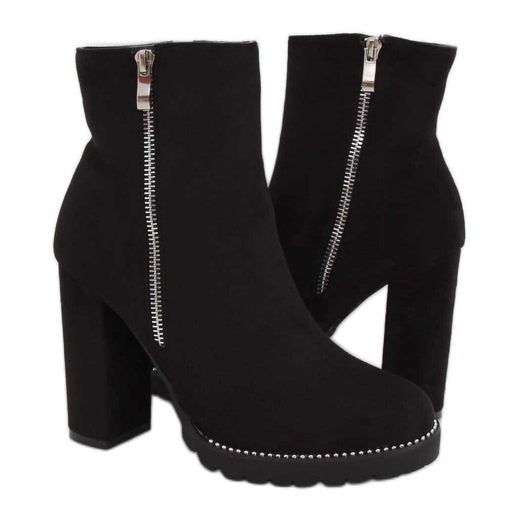 Fedezze fel az eleganciát és a kényelmet a fekete BM287 fekete magas sarkú bokacsizmával! Ez az ökológiai velúrból készült női bokacsizma tökéletes választás minden nő számára, aki ötvözni szeretné a divatot a kényelemmel. Gyönyörű dizájnjuk stílusos kiegészítőkkel, például ezüstgyöngyökkel és dekoratív cipzárral gazdagítva egyedi karaktert kölcsönöz nekik, amely kiemeli őket a tömegből.