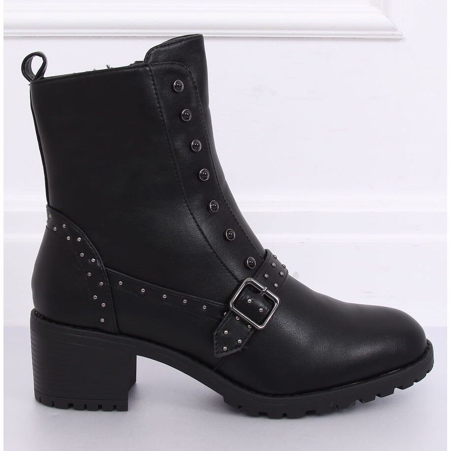 A fekete magas sarkú csizma 1003-1 katonai akcentusok kombinációja egy sziklafigurával. Egy stabil, 6 cm -es sarok és vastagabb, csapdába garantált, egy bizonyos lépés, valamint a dekoratív csapok és a fekete kövek megkülönböztetett stílust adnak a cipőnek. A gyakorlati cipzáras rögzítőelem megkönnyíti a gyors felhelyezést Ökológiai bőrből készül - stílusos és könnyen gondozható.