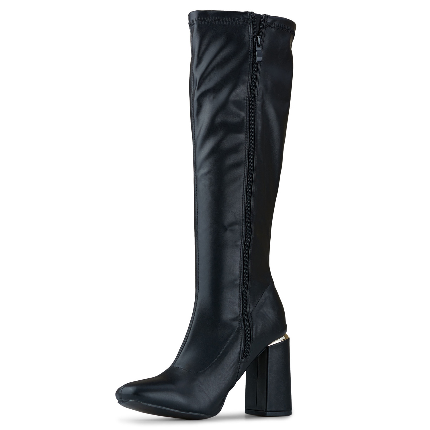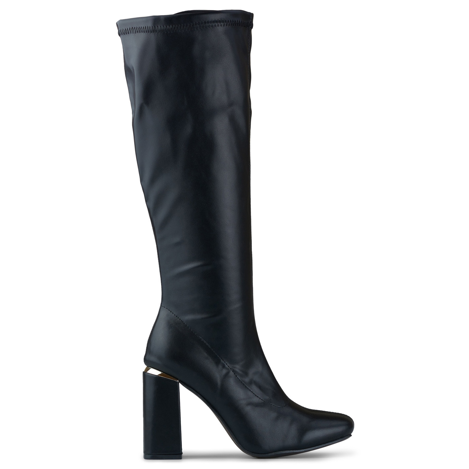 Részletek: Fekete magas sarkú eco-bőr csizma