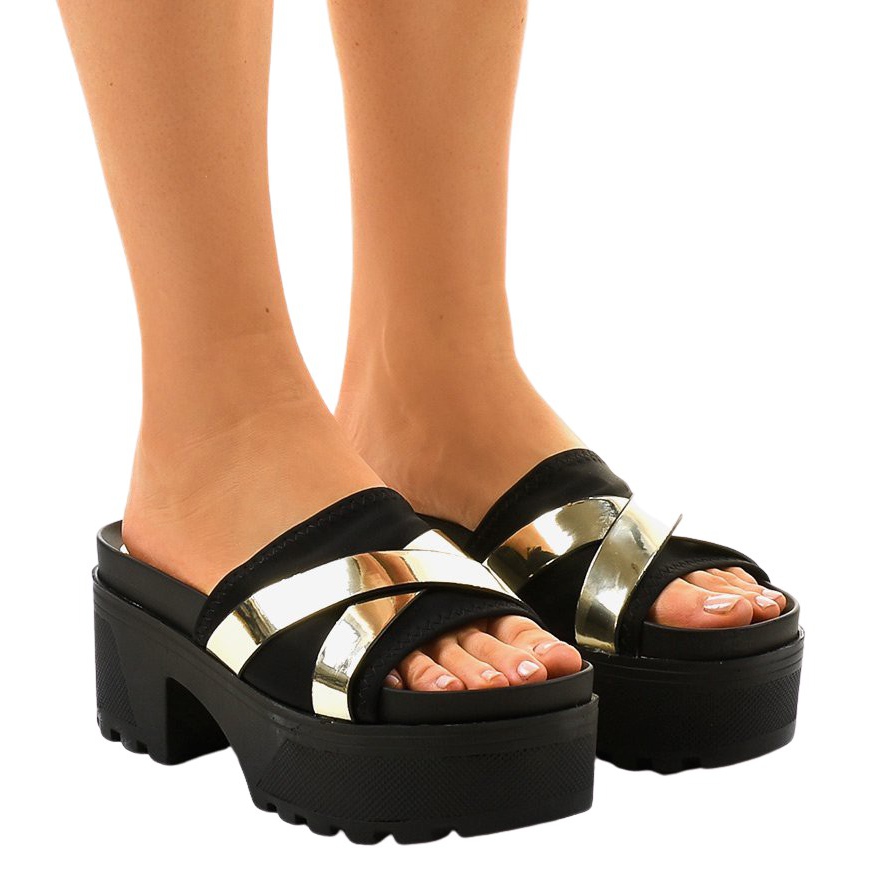 Részletek: Fekete magas sarkú papucs CL-3A309-42 sárga