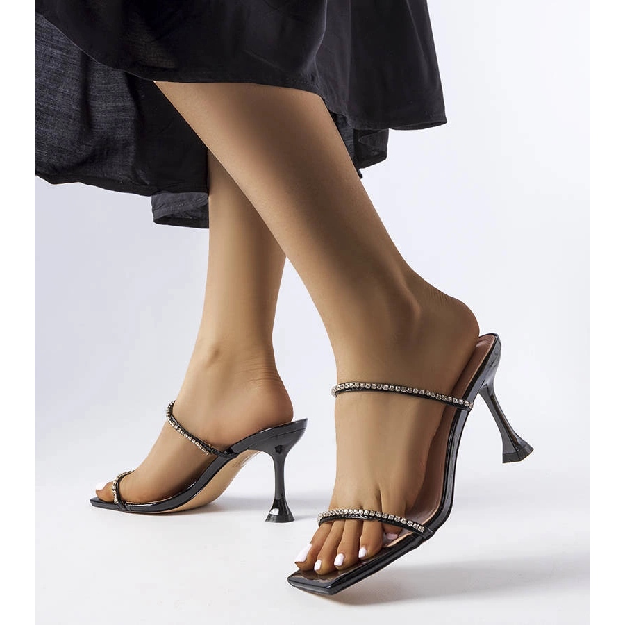 Fekete magas sarkú cipő Paso cirkonokkal - elegancia egy nyári részletben. Stílusos, nőies és hatékony: Tökéletes esti kirándulásokhoz, partikhoz és nyári rendezvényekhez.