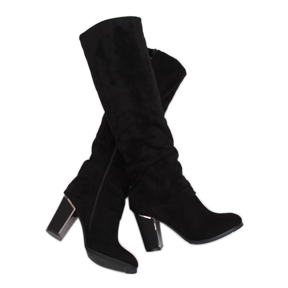 A 1103-GG Black fekete magas sarkú csizma tökéletes választás azoknak a nőknek, akik értékelik a divatos és elegáns lábbeliket. Ez a modell egyedi, divatos fodros felsőjének köszönhetően, amely magára vonzza a figyelmet. Stabil, 9 cm magas, matt felületű sarok tökéletesen kombinálható a velúr anyaggal, varázslatot adva a sziluettnek és optikailag meghosszabbítva azt.