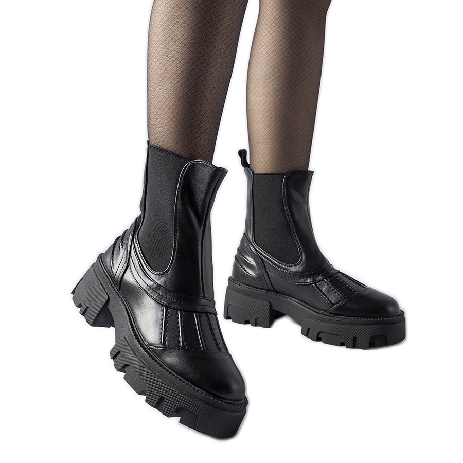 Az elegáns fekete szín és a felesleges minták hiánya megkönnyíti a dolgozók hozzáillesztését a különféle stílusokhoz. A kerek orr nem csak karaktert ad nekik, hanem a viselési kényelmet is garantálja. A cipő masszív sziluettje, bokamagassága nem csak tartást ad a lábnak, hanem magabiztosságot is ad a lépésben. A 6 cm magas lapos sarok néhány centiméterrel növeli a kényelmet anélkül, hogy a kényelem rovására menne.