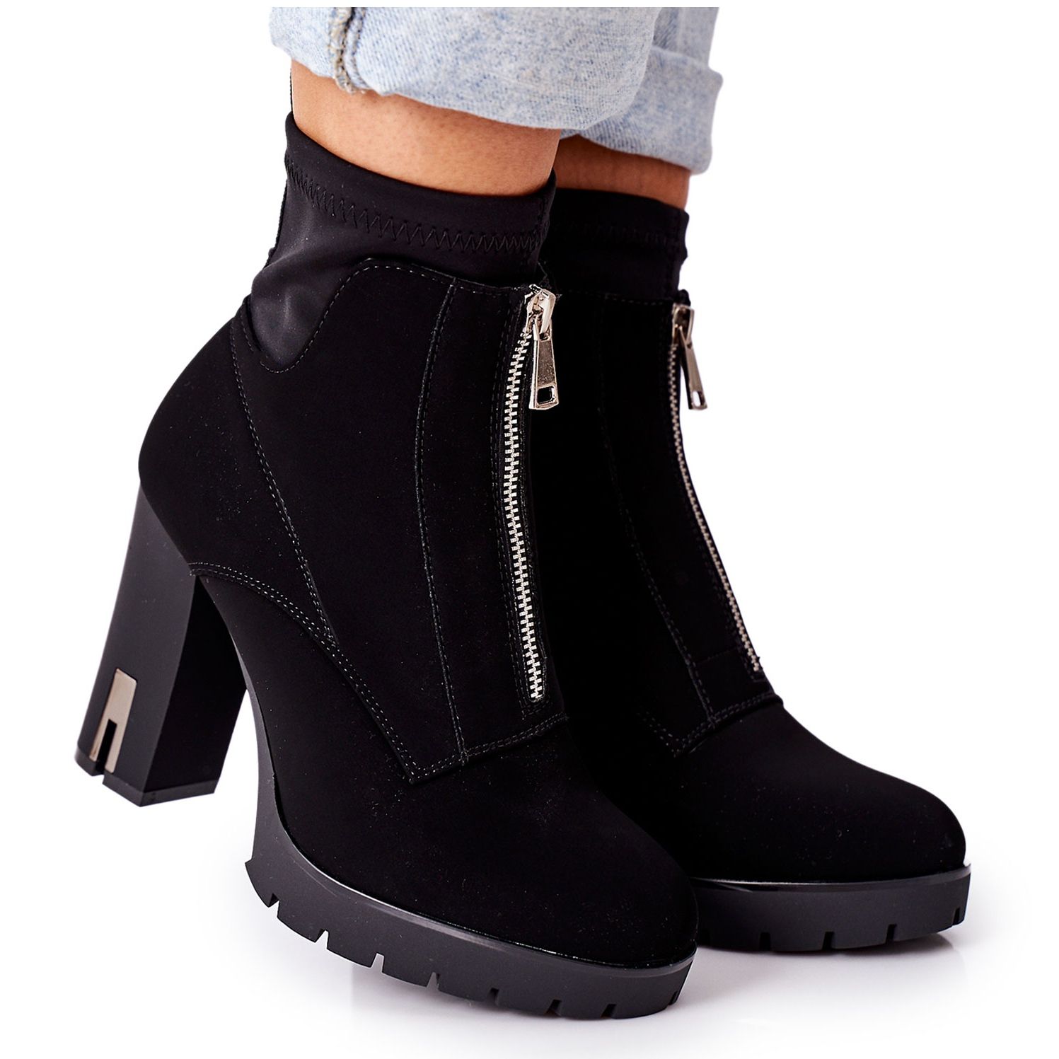 Szigetelt csizma a "Wonder Woman" bejegyzésen - egy klasszikus egy téli kiadásban. A fekete, velúr öko-bőr és a rugalmas anyag kombinálva elegáns és kényelmes vágást hoz létre, amely tökéletes a hűvösebb napokra. A lábbeli takaróval bélelt belső tér hőt és kényelmet biztosít az első feltételezéshez képest, és egy stabil, 10 cm -es poszt magas, egy 2 cm -es platformon egy bizonyos lépést biztosít a nap folyamán.