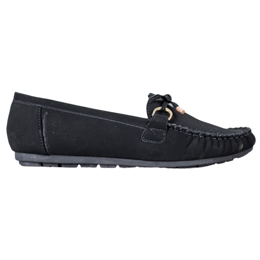 A mokaszinok anyaga ökológiai velúrbőr, amely tartósságot és elegáns, időtlen megjelenést biztosít a cipőknek. A fekete naplopók minden nő ruhatárának elengedhetetlen elemei, tökéletesek a legkülönbözőbb stílusokhoz, a hétköznapoktól a hivatalosabb alkalmakig.