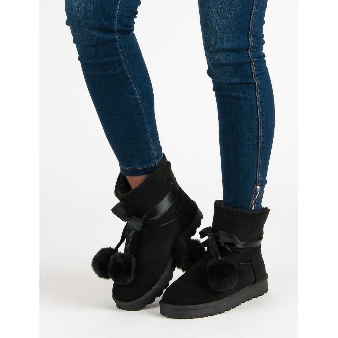 A fekete pomponokkal ellátott Mukluks tökéletes választás azoknak a nőknek, akik értékelik a stílust, a kényelmet és a melegséget a hideg napokon. Ez az elegáns hócsizma kiváló minőségű ökológiai velúr bőrből készült, ami elegáns megjelenést kölcsönöz és környezetbaráttá teszi.