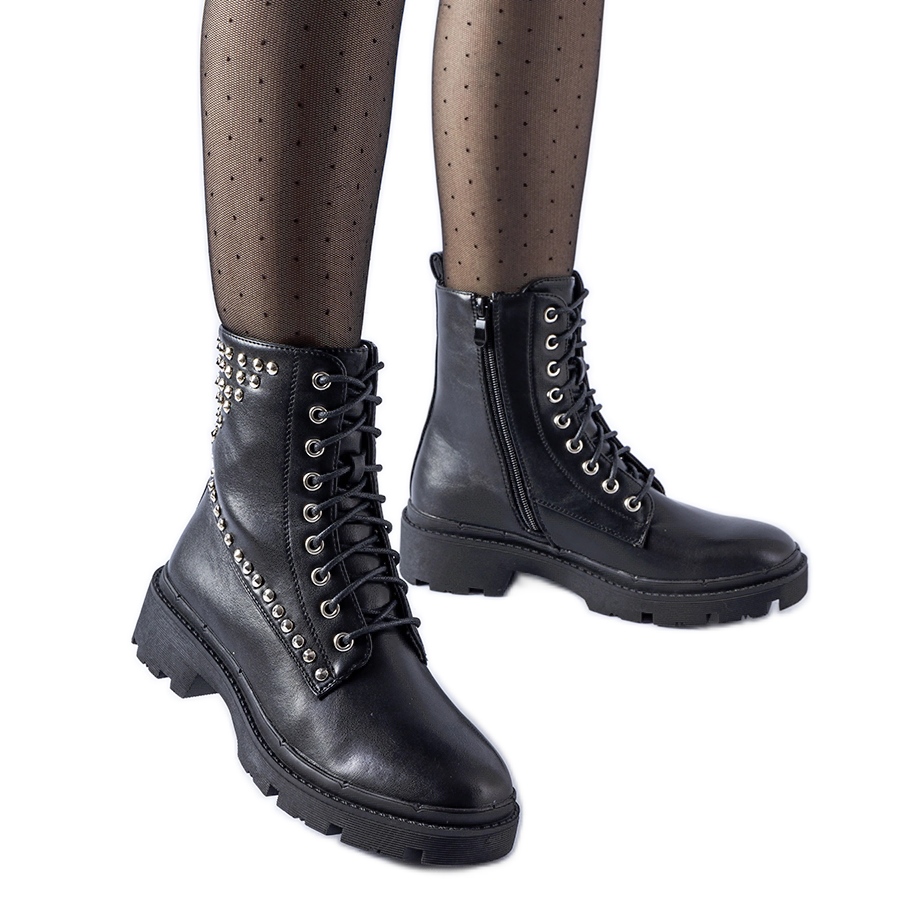 Fekete munkáscsizma Bobbitt szegecsekkel díszítve