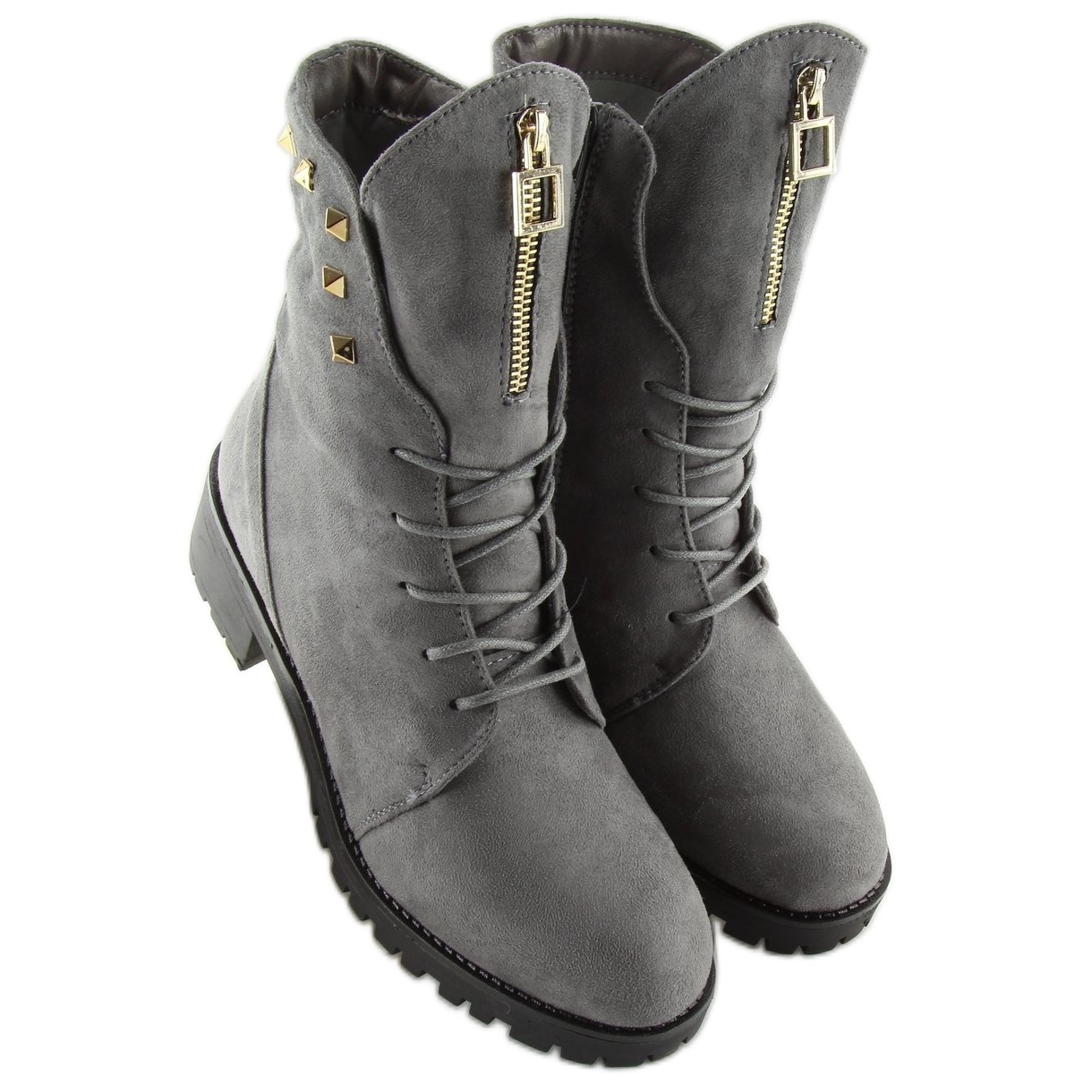Stílusos női bokacsizma rock hangulatban - klasszikus munkáscsizma finom díszítéssel. A dekoratív szegecsek és a nyelven található szemet gyönyörködtető cipzár karakteressé teszik őket, így tökéletesen kiegészítik a kevésbé formális stílusokat, és előnyt adnak nekik. Teljesen befűzött, emellett oldalsó cipzárral van ellátva, ami megkönnyíti a felhelyezést. Ökológiai velúrból, elegáns fekete színben.