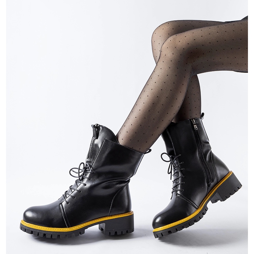 Inna marka Fekete munkáscsizma sárga Elisabetta díszítéssel