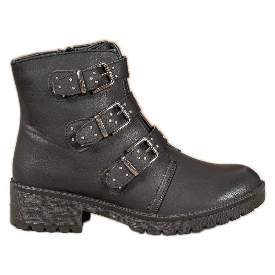 A fekete ruhás J. Star dolgozók tökéletes választás a stílust és a kényelmet értékelő nők számára. A kiváló minőségű ökológiai bőrből készült cipők a divatos dizájnt és a funkcionalitást ötvözik. Sziklakarakterüket dekoratív csatok és ezüst strasszok hangsúlyozzák, amelyek eredetiséget adnak.