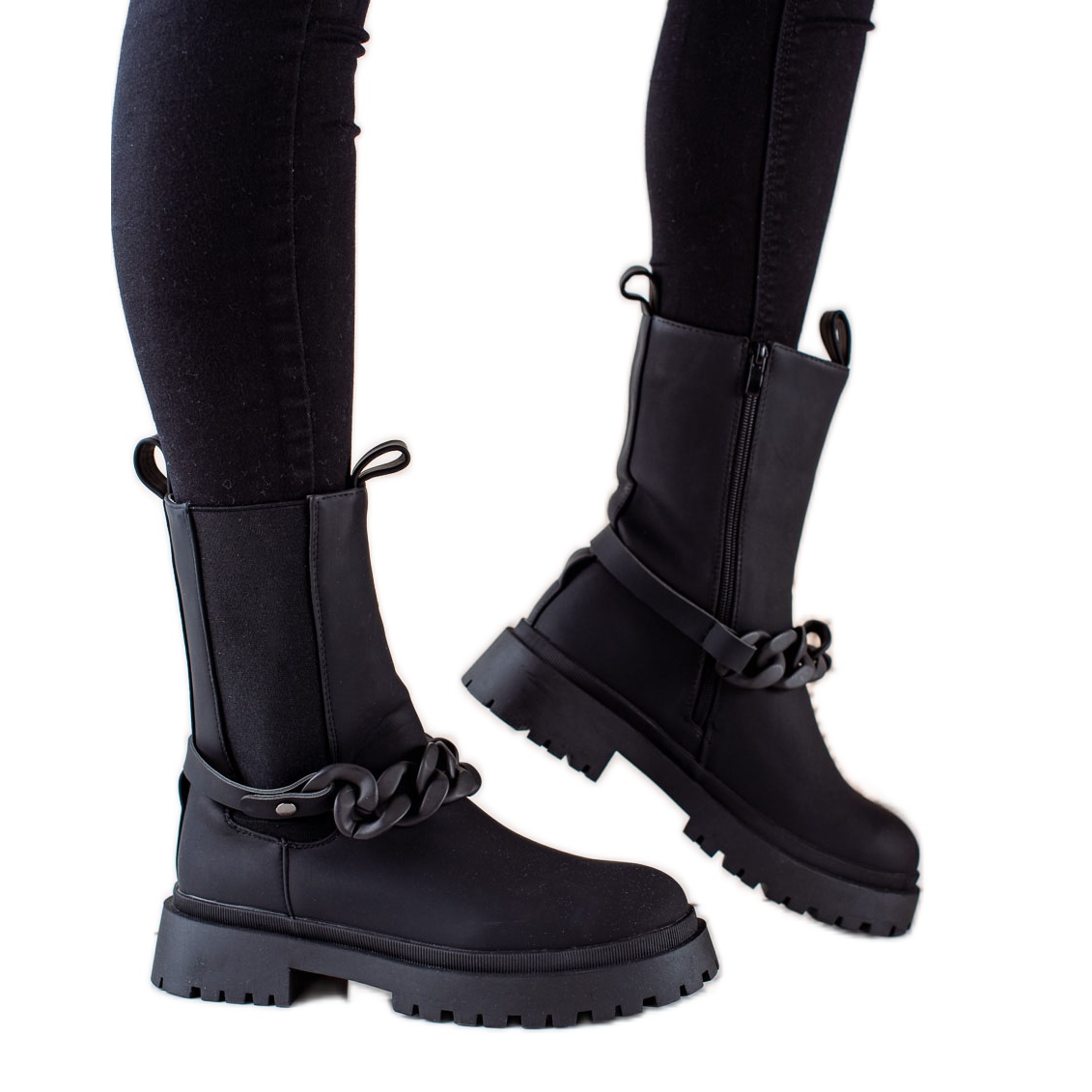 Fedezze fel a divatot és a kényelmet a TRENDI egyik legújabb modelljében - fekete munkáscsizmában, dekoratív övvel, amely tökéletesen illeszkedik az őszi/téli szezon trendjeihez. Ez az elegáns női csizma felépített, puha sarokkal nem csak a viselési kényelmet, hanem a lapos sarkának köszönhetően kiváló stabilitást is biztosít.