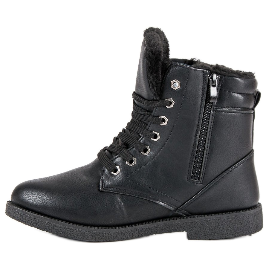 A fekete munkások fűzősek és cipzárral rendelkeznek, ami megkönnyíti a fel- és levételüket. A cipő magassága a boka fölé ér, ami emellett meleget és stabilitást biztosít. Szintetikus anyagokból készültek, könnyen tisztíthatók és nem igényelnek bonyolult gondozást.
