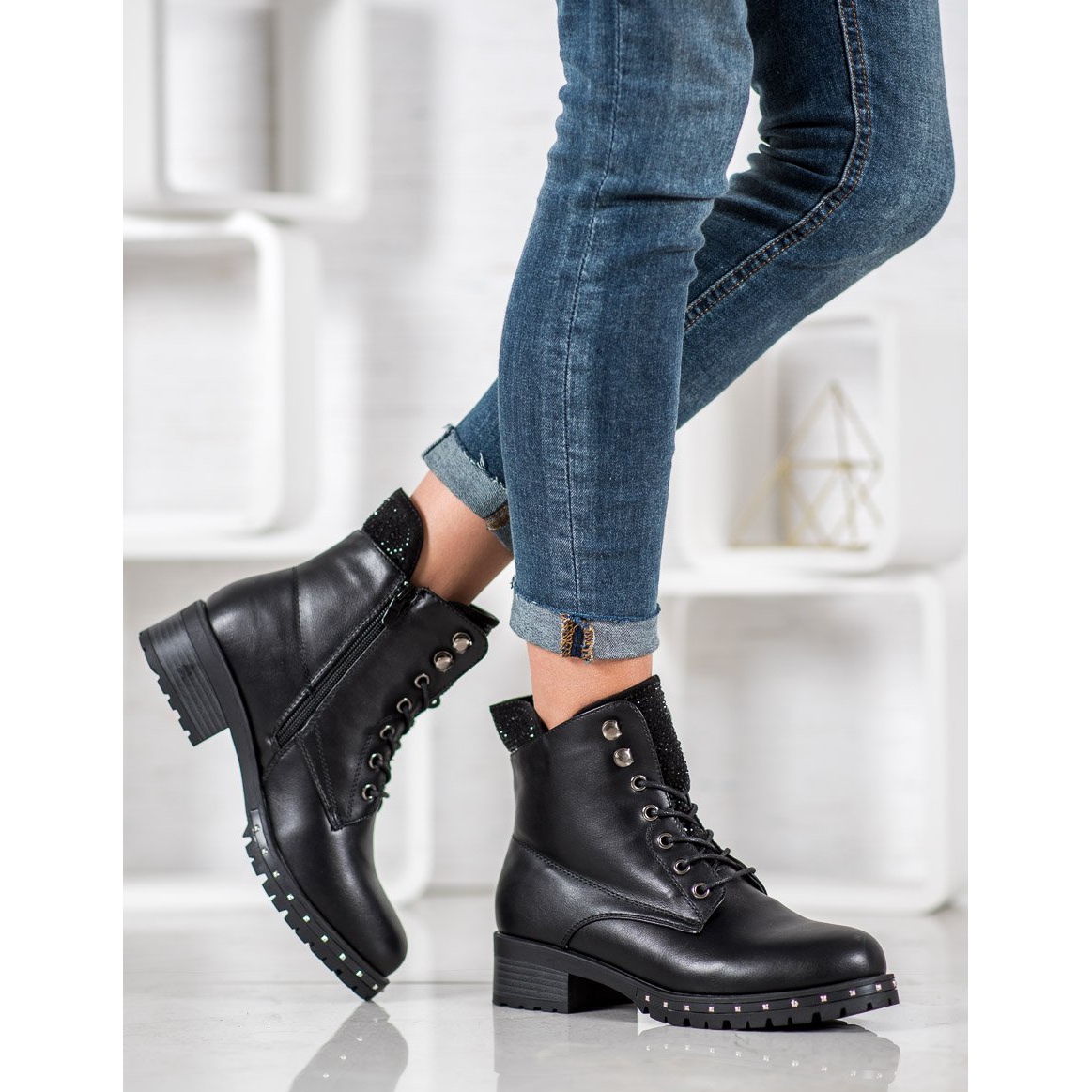 Egyedülálló J. Star munkáscsizmát mutatunk be fekete színben, kristályokkal, amelyek minden divatos nőt biztosan megörvendeztetnek. Ezek az egyedi cipők kiváló választás azoknak a nőknek, akik értékelik a kényelmet és a stílust, laza kialakításuk pedig tökéletessé teszi a mindennapi használatra.