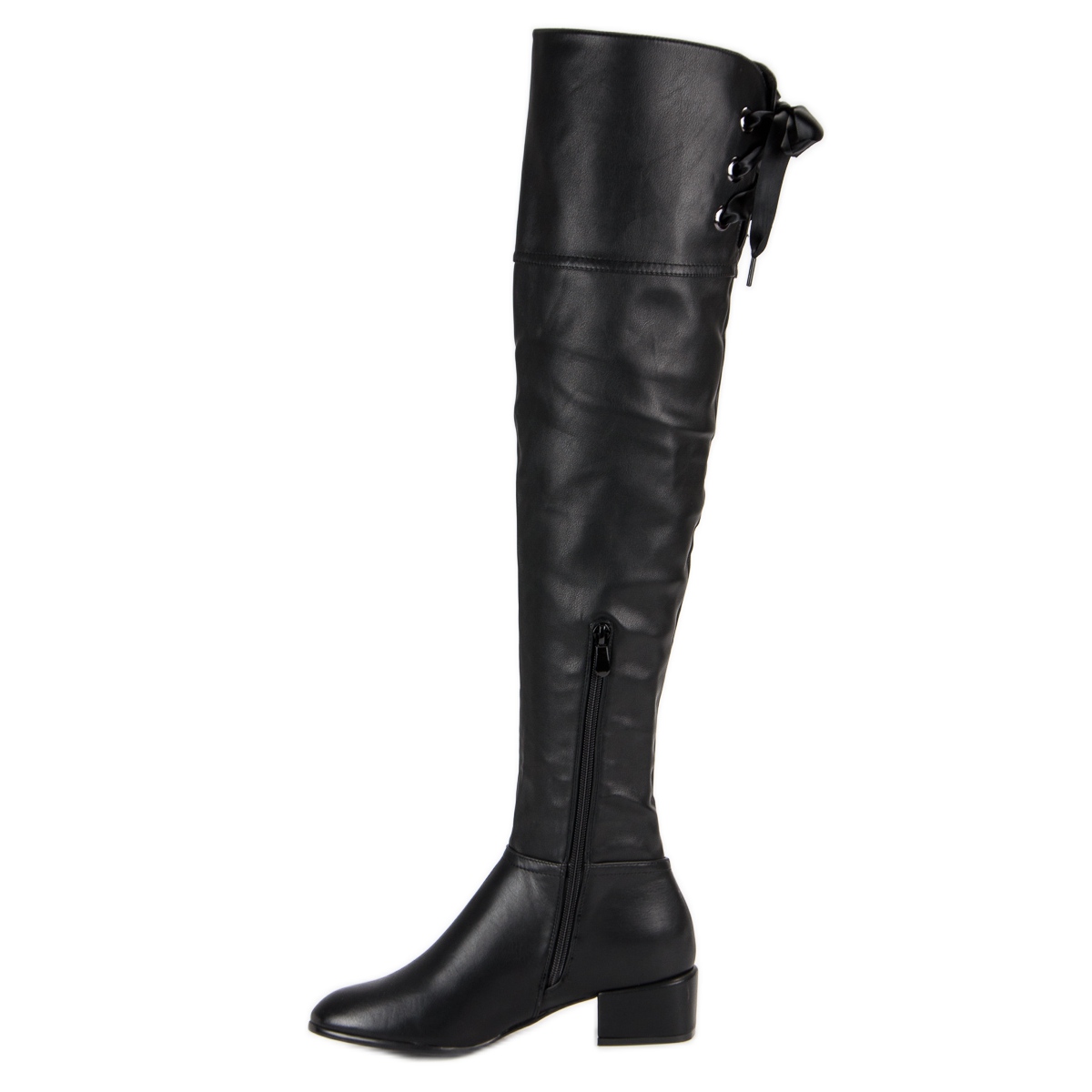 A térd fölé érő klasszikus szabás kiemeli a lábakat, eleganciát kölcsönöz a sziluettnek és optikailag meghosszabbítja azt. A kerek orr és a szintetikus talp biztosítja a kényelmet és a stabilitást minden lépésnél. Minta és kiegészítő dekorációk nélkül ezek a csizmák univerzális megoldást jelentenek, amely tökéletesen illeszkedik bármilyen stílushoz.