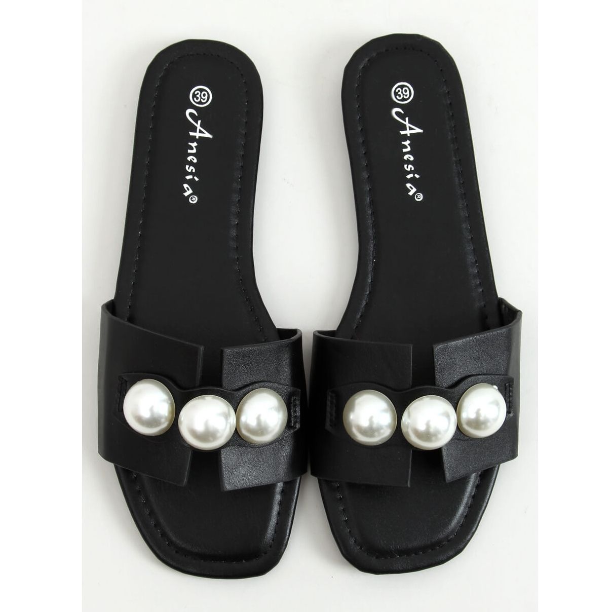Inna marka Fekete N-91 Fekete papucs gyöngyökkel