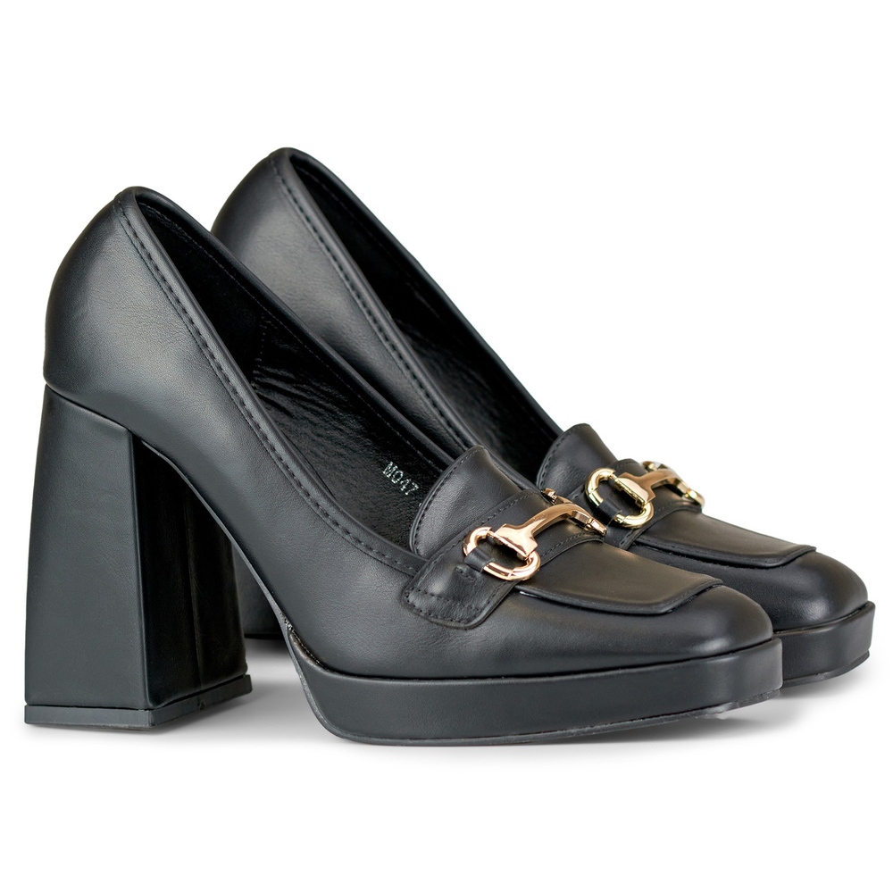 A magas, kényelmes sarokú fekete cipők a klasszikusok és a modern stílus kombinációja - ideális azoknak a nőknek, akik napi szinten és a nagyobb kijárat során értékelik az eleganciát és a kényelmet.