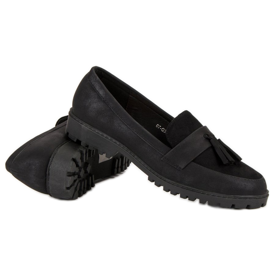 A mokaszinok futófelülettel ellátott műanyag talppal rendelkeznek, amely garantálja a stabilitást és a tapadást különféle felületeken, a 2,5 cm magas platform pedig kényelmes viseletet tesz lehetővé egész nap. Univerzálisságuknak köszönhetően ezek a fekete mokaszinok tökéletesek tavaszra, nyárra, őszre és télre, sok stílushoz passzolva.