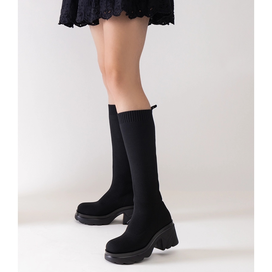 Az elasztikus nimroda felső részén lévő fekete csizma tökéletes választás azoknak a nőknek, akik mind a stílust, mind a kényelmet értékelik. Klasszikus kialakításuk, kerek orrral és egy lapos sarkú, a platformmal, tökéletessé teszi őket minden nap, de tökéletesen kiegészítik az esti kirándulások elegáns stilizálását.