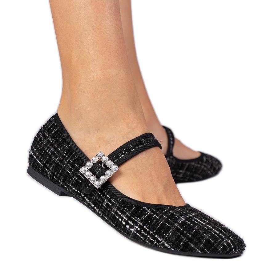 Az 1 cm magasságú lapos sarok miatt a balerinák rendkívül kényelmesek, hosszú napok futás közben. A négyzet alakú orr és a finom dekorációk cirkonok formájában eleganciát adnak számukra, így mind a mindennapi stilizációk, mind a formálisabb ruhák illeszkednek. A fekete színek és a megfelelő fekete talp ez ezeket a balerinákat sokoldalú ruhadarabbá teszi, harmonikusan keverve a klasszikus szoknyákkal, valamint az alkalmi farmerekkel.