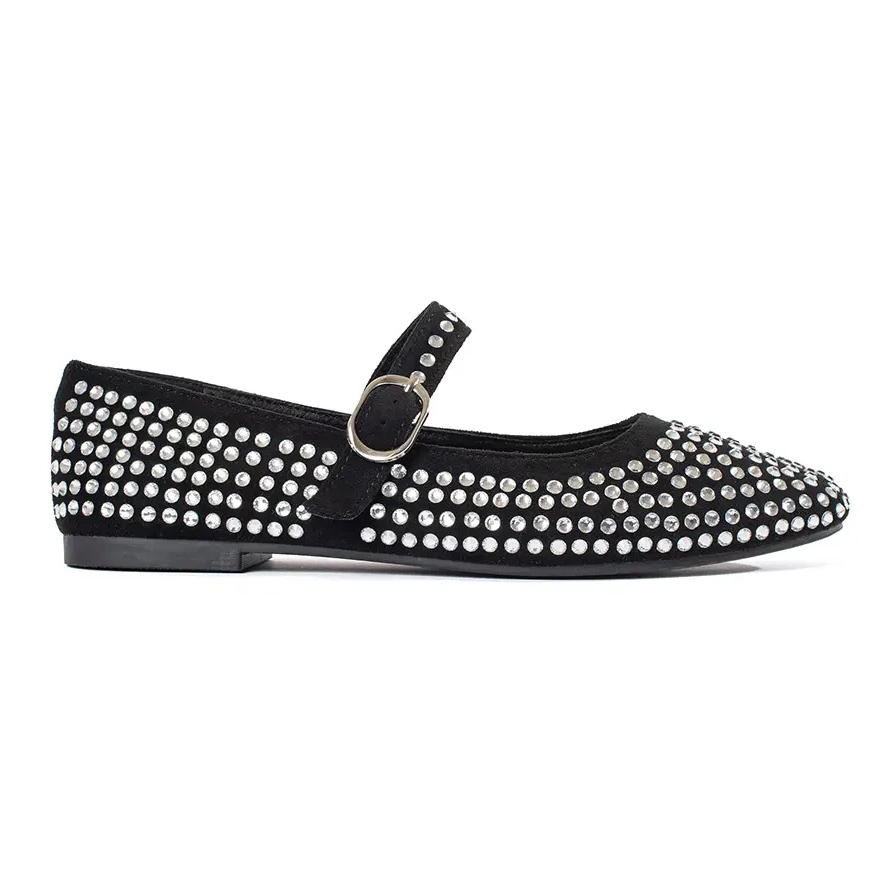 A balerinákat csapok díszítik, ami karaktert ad, és tökéletesen illeszkedik a különféle stílusokhoz - a mindennapi és az elegánsabb. A 3 cm -es platform magassága finoman kiegészíti a kényelmet. Az univerzális fekete színnek köszönhetően minden szekrénybe könnyen belekeveredhet.