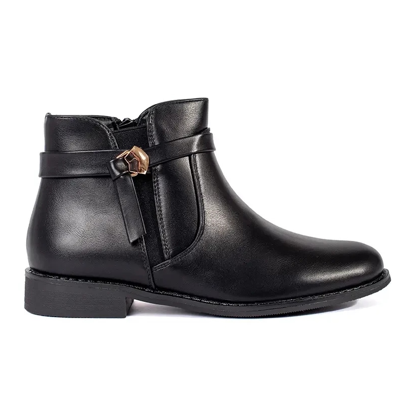 Inna marka Fekete női bokacsizma pánttal, alacsony sarokkal