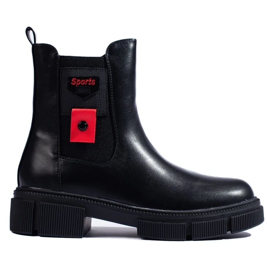 Részletek: Fekete női Chelsea csizma az emelvényen