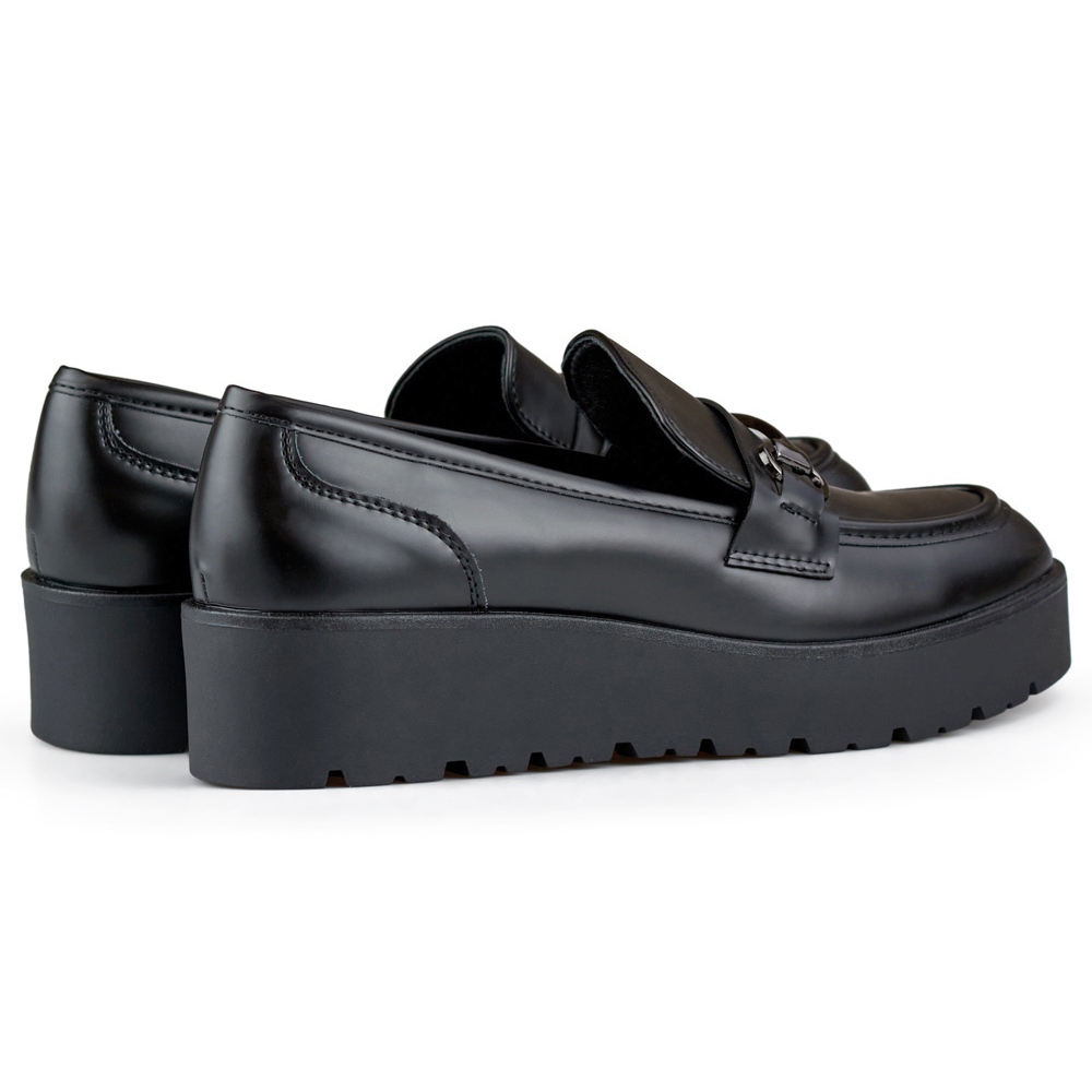 Részletek: Fekete női cipő alacsony ékkel, női cipő emelvényes, fekete
