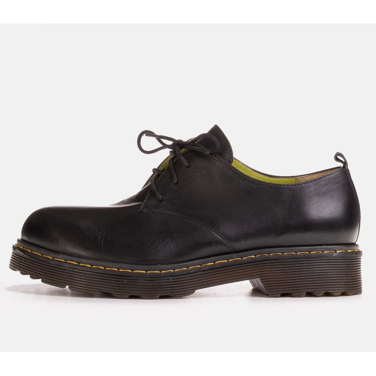 A használat kényelmét hangsúlyozza a bőr talpbetét is, amely megfelelő légáteresztést biztosít a lábnak, és segít a higiénia egész napos megőrzésében. A cipők kerek orra teret ad a lábujjaknak, a fűzős zárás pedig lehetővé teszi, hogy a cipőt tökéletesen az egyes lábak egyéni igényeihez igazítsák.