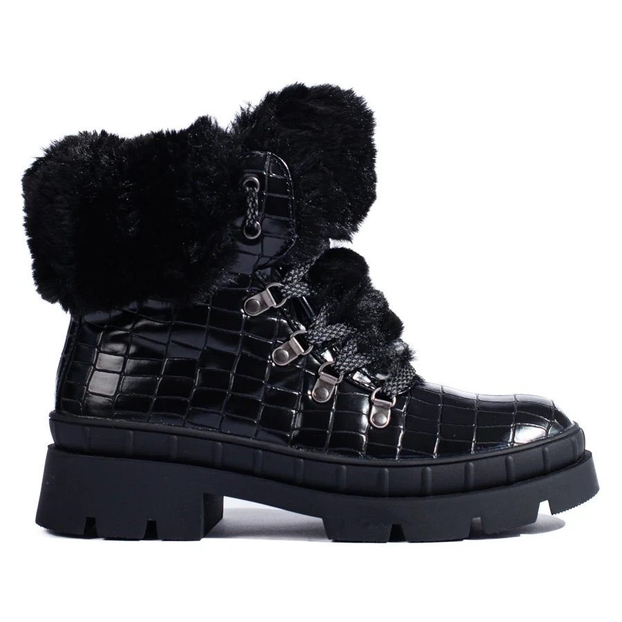 Női csizma szőrrel - fekete, meleg és stílusos