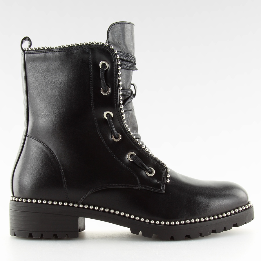 Fedezze fel az egyedi stílust az NC251 Black női fekete munkáscsizmával. Ez a rendkívül divatos bokacsizma a klasszikus dizájnt ötvözi a modern akcentusokkal, amelyek felkeltik a figyelmet. Ebben a szezonban a kis golyók formájú ezüst alkalmazások dominálnak, amelyek eredeti karaktert adnak, és megkülönböztetik őket más modellektől.