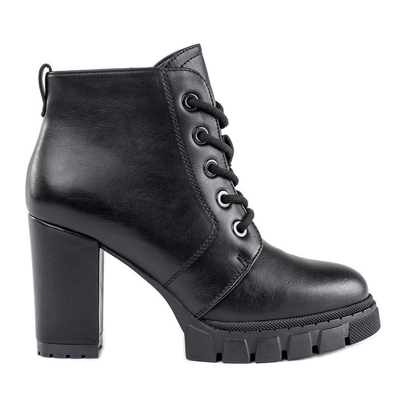 A fekete csizmának kerek orra és elegáns 9,5 cm -es magas oszlop van, amely néhány centiméter magas hozzáadást ad, anélkül, hogy feladta a kényelmet. A felső 6,5 cm magassága azt jelenti, hogy tökéletesen ragaszkodnak a bokához, és 22 cm -es szélességük lehetővé teszi a kényelmes illeszkedést.