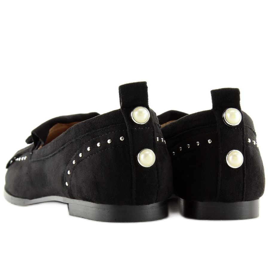 Fedezze fel az eleganciát és a kényelmet egyben a gyönyörű G242 Black női mokaszinoknak köszönhetően! Ezeket az egyedi cipőket klasszikus szabás jellemzi, amely soha nem megy ki a divatból. A masnival ellátott dekoratív rojtok és az elülső finom szegecsek és a hátulsó gyöngyök lenyűgöző kombinációja minden lépést igazán élvezetessé tesz bennük.