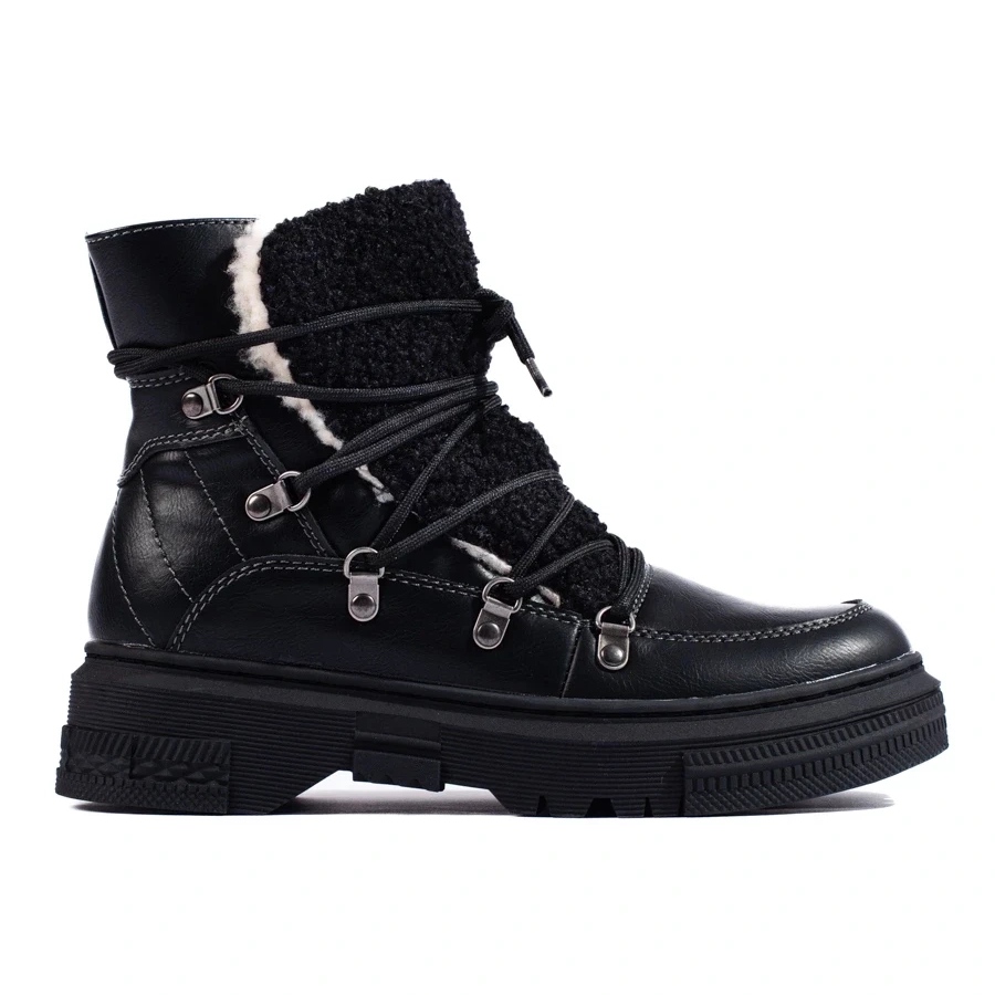 Elegáns és praktikus női hócsizma ökológiai bőrből, klasszikus fekete színben. A báránybőrrel bélelt puha, szigetelt belső tér hőt és kényelmet nyújt még hideg napokban is. A sport és az alkalmi vágások a mindennapi stilizációkban-a város körüli sétákig-a téli tevékenységekig tartanak.
