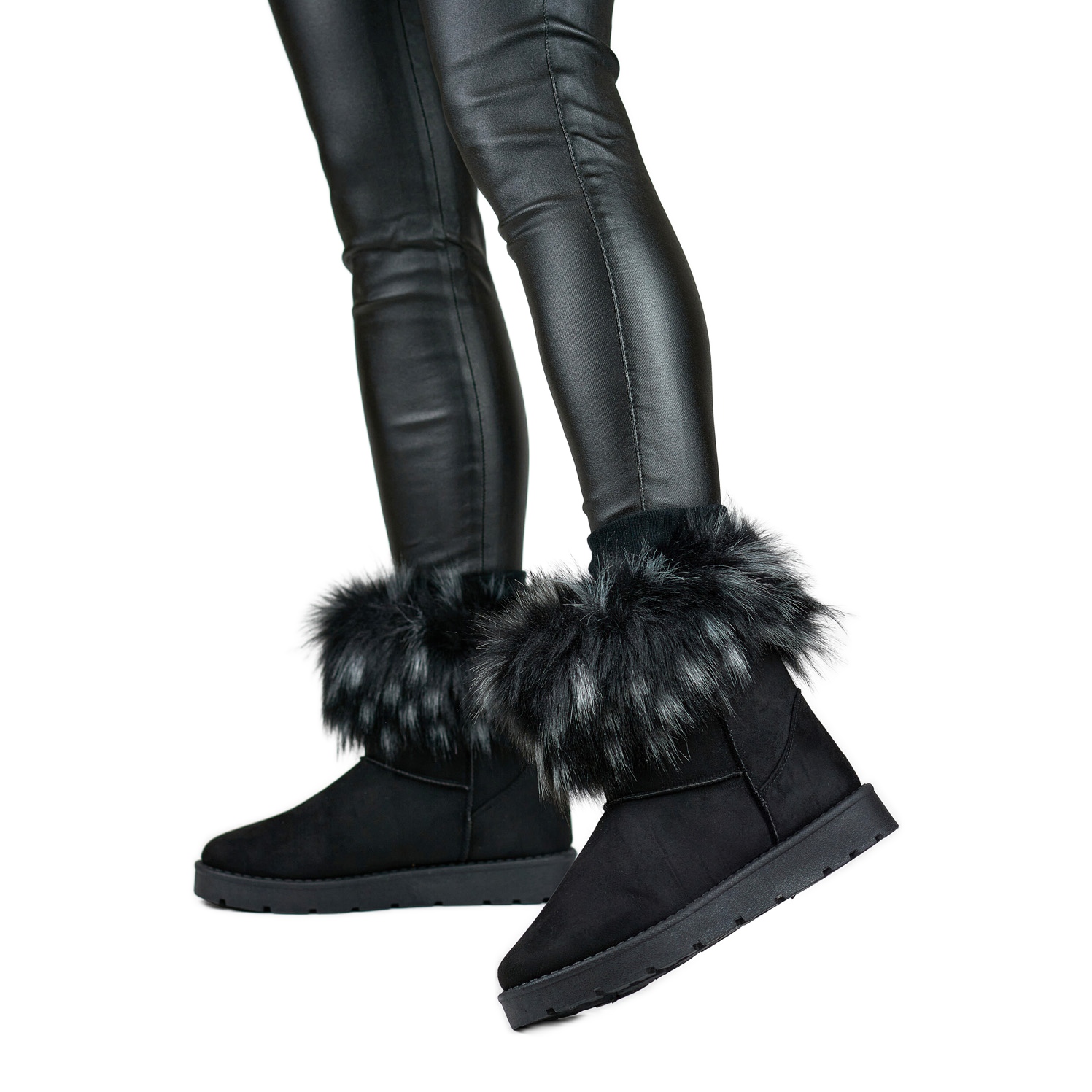 Részletek: Fekete női hócsizma bundával, téli cipő télire