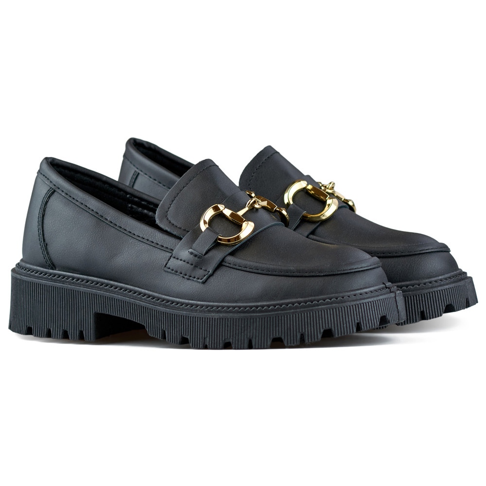Ezeket a cipőket egy kényelmes 4 cm -es magas platform jellemzi, amely hosszú órákig biztosítja a kényelmet. A kerek orr és a csúszó rögzítőszer praktikus és könnyen felhelyezhetővé teszi őket. További előnye a stiliális aranylánc, amely egyedi karaktert ad nekik, és minden szekrény egyedi elemévé teszi őket.