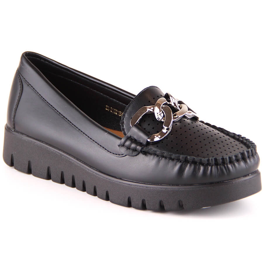 **Női mokaszinok emelvényen lánccal, fekete Potocki YQ21021**