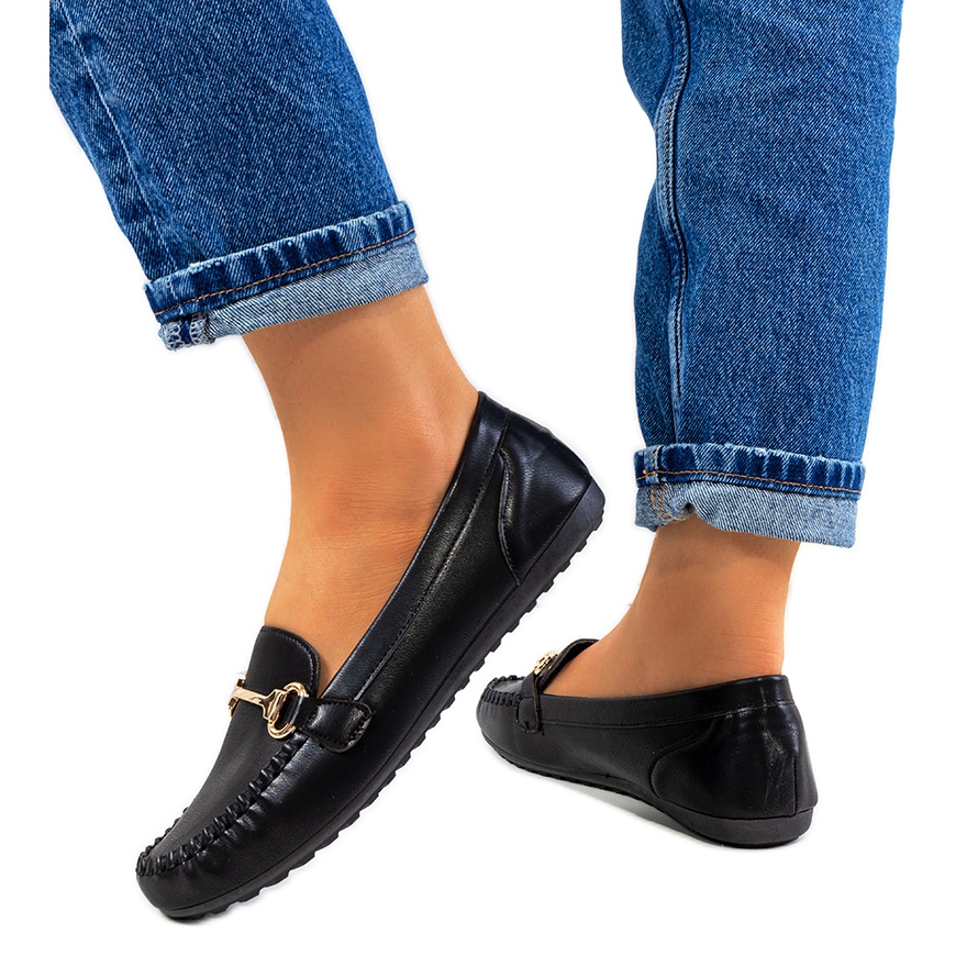 Az Ilana mokaszinokat gondosan varrt részletek jellemzik, különösen a lábujj körül, ami elegánsabbá teszi. A klasszikus fekete szín univerzálissá teszi őket, és könnyen kombinálhatók más gardrób elemekkel. Ez a modell alacsony magasságú, 1,5 cm magas sarokkal, ami megfelelő stabilitást biztosít.