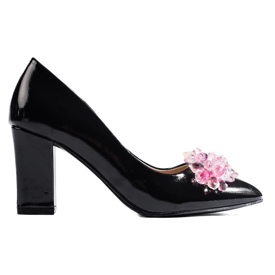 Fekete női szivattyúk dekorációkkal - elegancia és stílus minden alkalomra