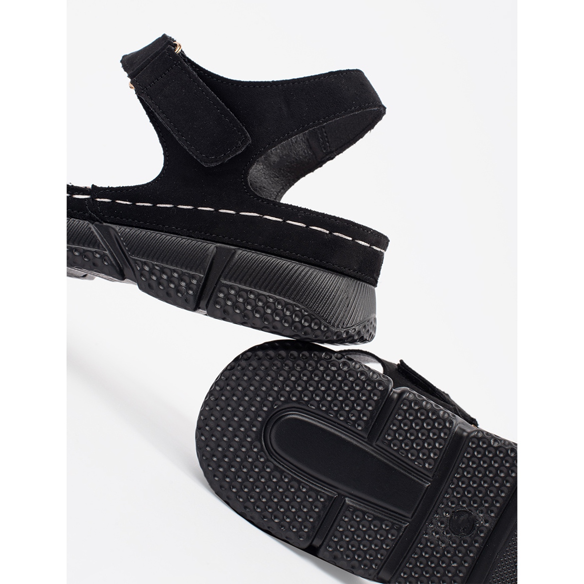 Gyakorlatilag tépőzárral rögzítve ezek a szandálok megkönnyítik a felhelyezést, és lehetővé teszik, hogy pontosan megfeleljen a láb alakjának. A klasszikus fekete szín azt jelenti, hogy megegyeznek a különféle ruhákkal - a levegős ruháktól az alkalmi farmerig.