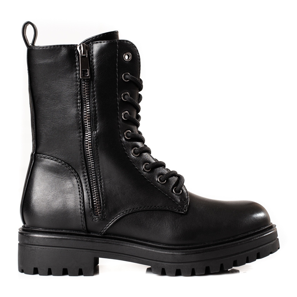 A fekete női Shelovet munkáscsizma dekoratív cipzárral ideális választás azoknak a nőknek, akik elegáns és kényelmes cipőt keresnek az őszi/téli szezonra. Ez a kiváló minőségű ökológiai bőrből készült bokacsizma a modernitás és a klasszikus dizájn kombinációja. Lezser, rockos stílusuk tökéletes a mindennapi ruhákhoz, karaktert kölcsönözve bármilyen ruhának.