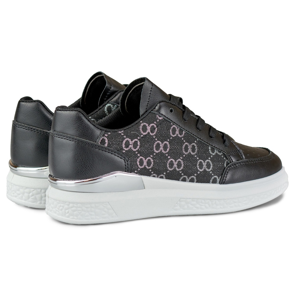 Fekete női cipők divatos geometriai mintával - kényelem és stílus minden nap