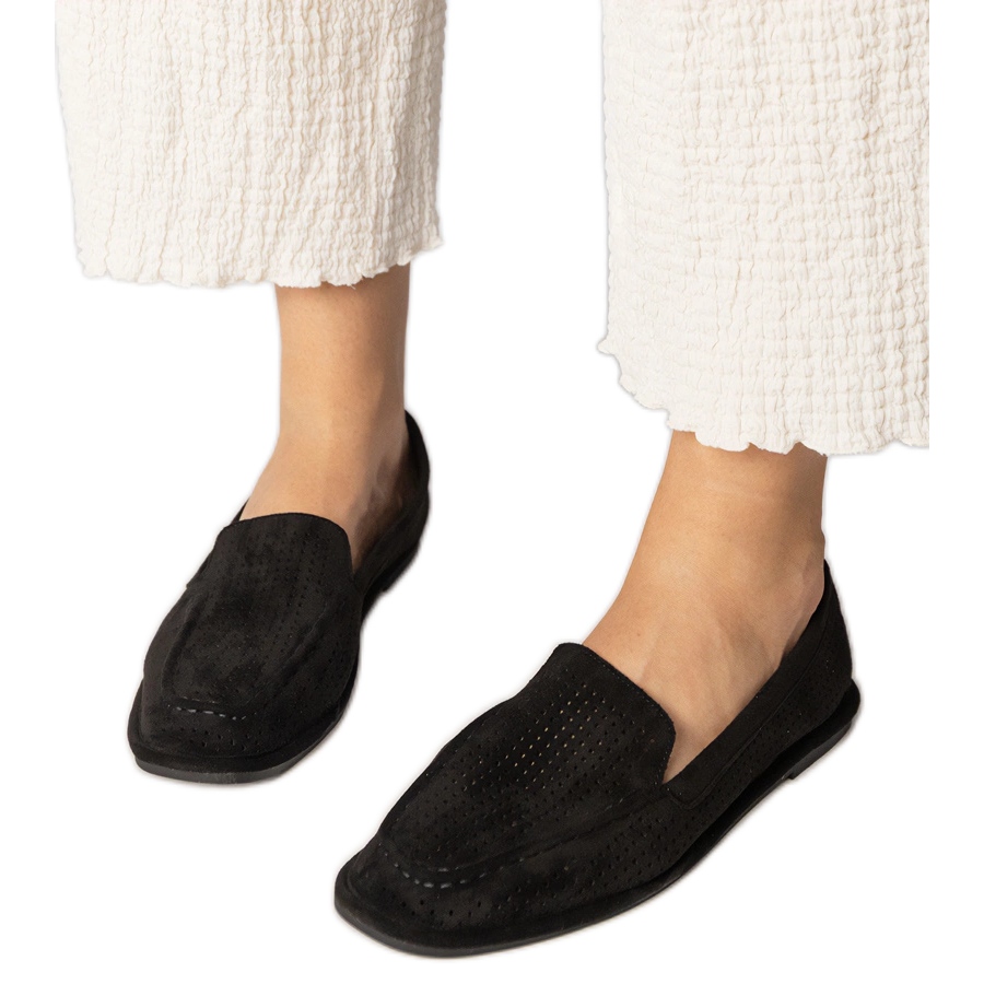 Az ökológiai velúr bőrből készült mokaszinok nemcsak a tartósságot, hanem az esztétikai megjelenést is biztosítják. A nyílt munkamintázat könnyedséget ad nekik, ami nagyszerű választást jelent a tavaszi és nyári napok számára. Ezek a fekete, csúszás -off cipők jól illeszkednek mind a mindennapi, mind az elegánsabb stilizációkhoz, ami sokoldalú ruházati elemgé teszi őket.