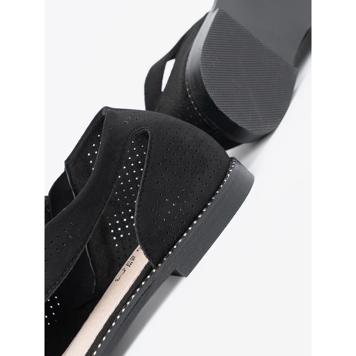 Fedezze fel az eleganciát és a kényelmet a neves Goodin márkából származó fekete nyílt munkás lapos szandálokkal. Ezek az egyedi cipők a klasszikusok és a modernitás tökéletes kombinációja, amely tökéletesen illeszkedik a nyári trendekhez. Kiváló minőségű ökológiai velúr bőrből készül, a szandálok eredeti formatervezésével örömet élveznek, és nyitott részleteik és finom strasszok egyedi ragyogást adnak.